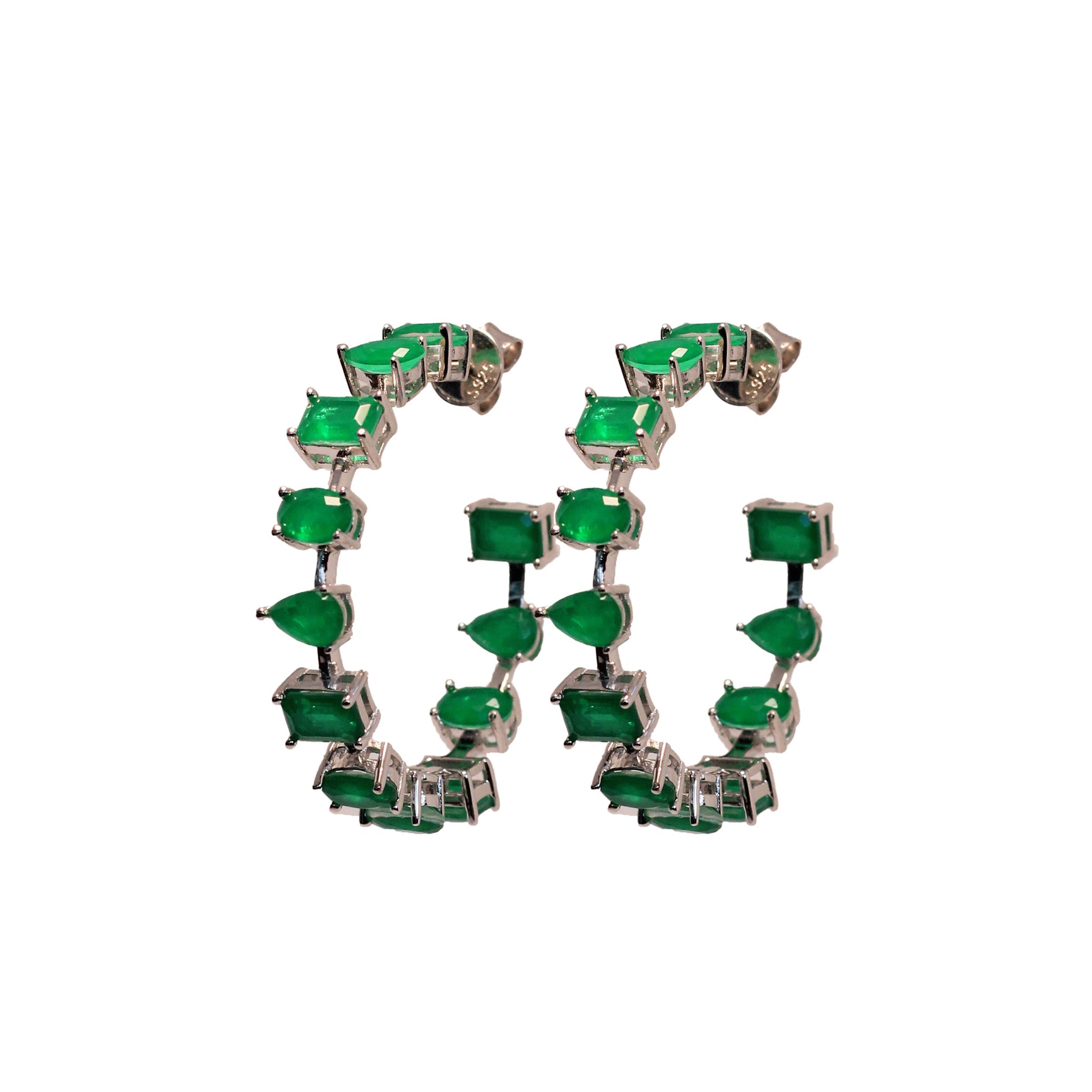 Diseño estructurado, vibrante y lleno de carácter. Estas arracadas combinan cortes geométricos y en gota de esmeraldas hidrotermales para crear un efecto visual sofisticado y fuera de lo convencional.